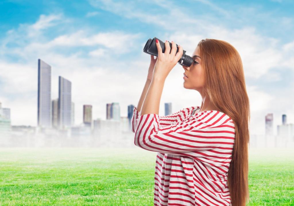 Aussichtspunkte ordnen das Chaos der Straßen. Von Parkhäusern, Hügeln oder erlaubten Dachterrassen fängst du Achsen, Diagonalen und dichte Muster ein. Achte auf Sicherheit und Genehmigungen. Schreib in den Kommentaren, wo du den weitesten Blick über deine Stadt gefunden hast.